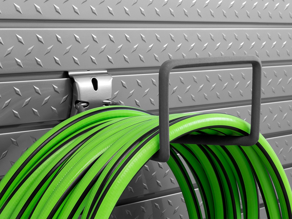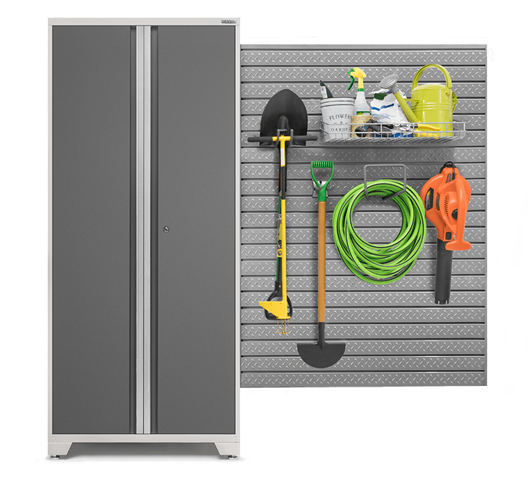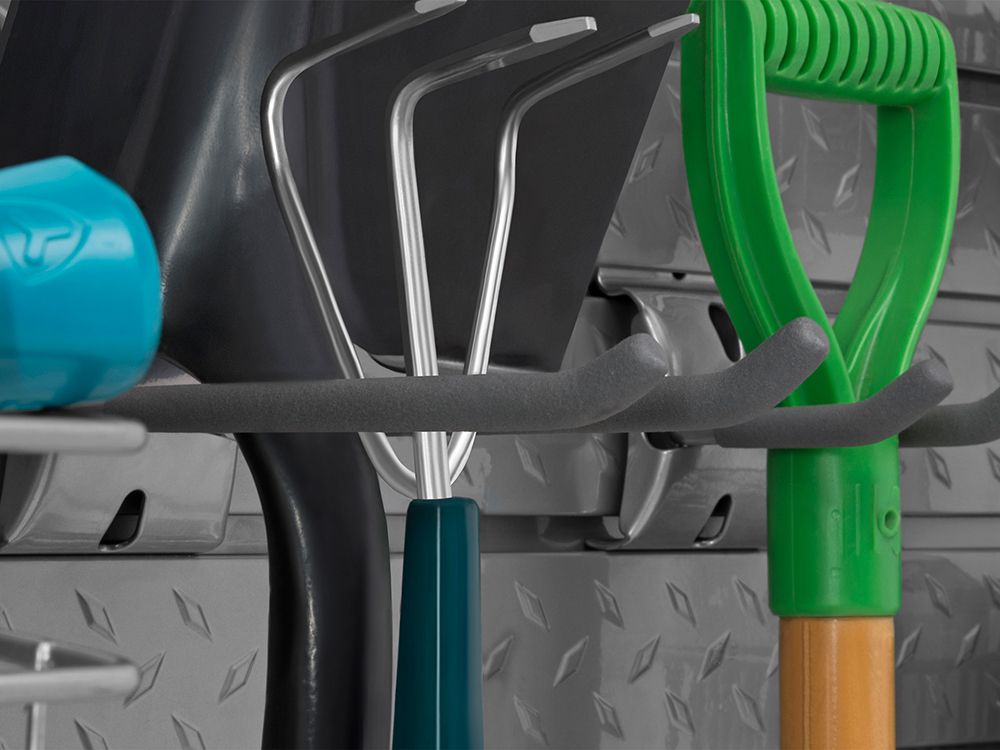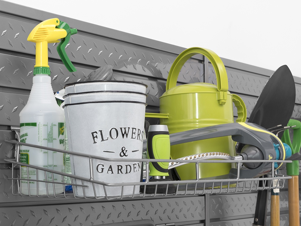 Quick access to cleaning products, gardening tools, and outdoor footwear